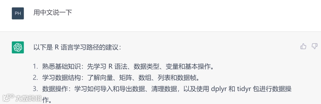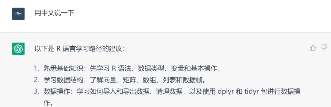 chatGPT的建议很有用,先学习基础语法,然后跟着项目走一个,这里还要推荐我编写的GWAS教程了,里面有生物统计、R语言基础和生物信息,内容包括pdf+数据+代码+B站视频讲解,没有领取的小伙伴快去领取一下:快来领取 | 飞哥的GWAS分析教程。