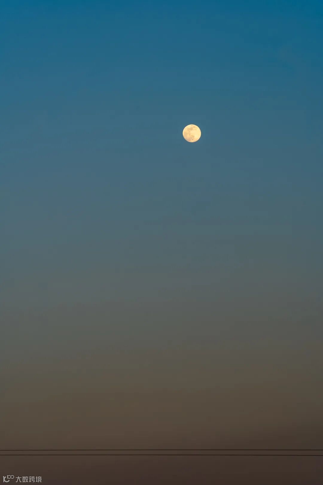 元宵节,月亮是少不了的,晚上的月亮很常见,但是傍晚的月亮也很漂亮。傍晚的月亮来了,下面这张图片就是: