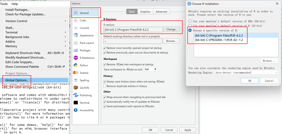 如果自己有很多R版本,可以在设置中进行定义,方法如下:
