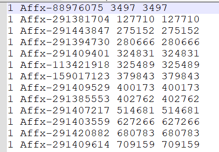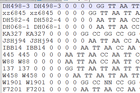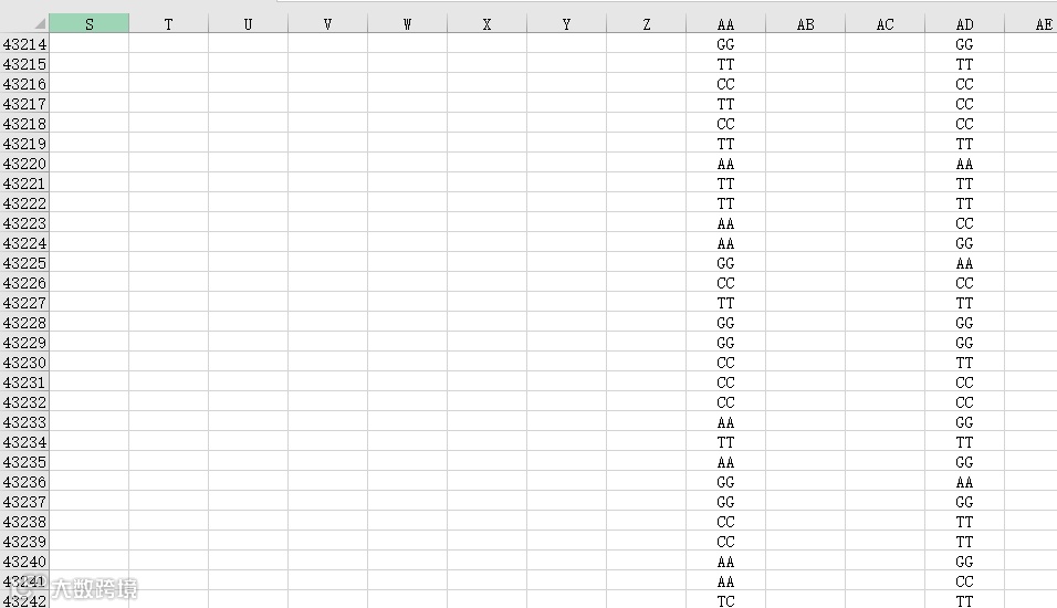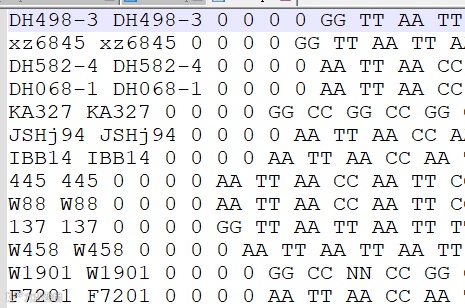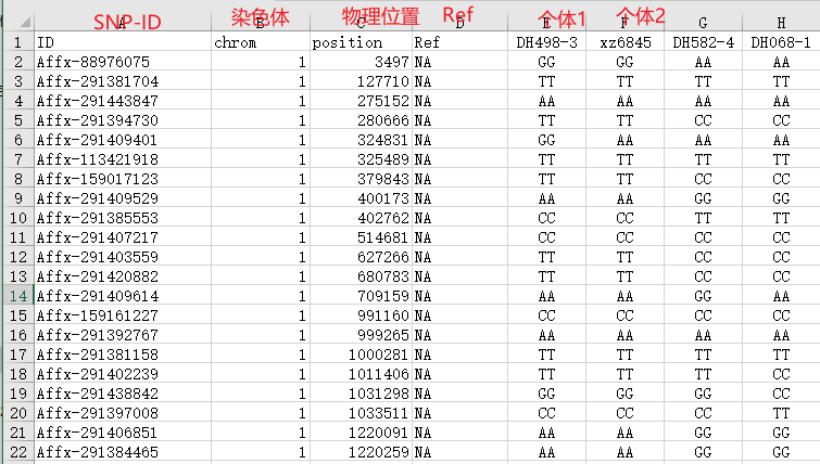 第五列以后是每个个体的具体分型,比如AT,AA,GG等分型。