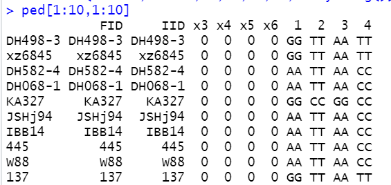 fwrite(ped, "file.ped",col.names = F,quote = F,sep = " ",na = "00")