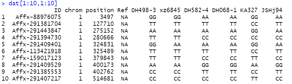 dat = read.xlsx("genotype.xlsx",na.strings = "NN")