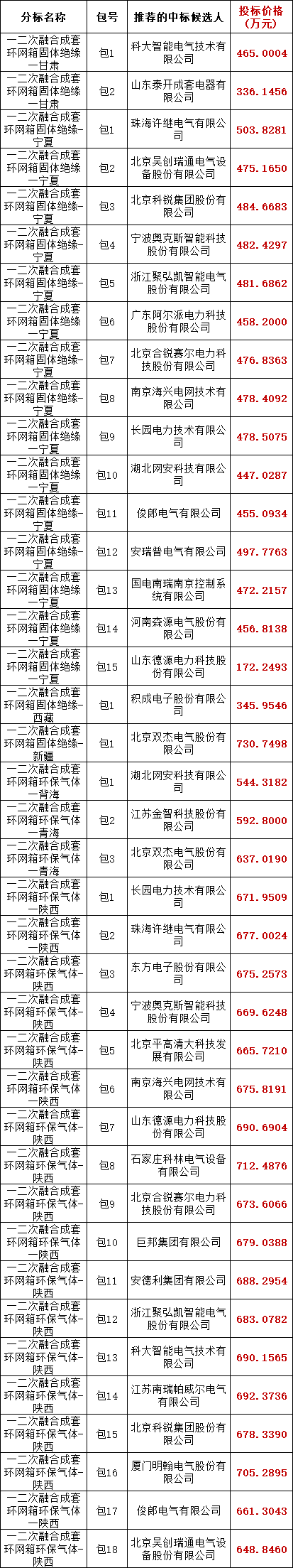 国家电网有限公司2025年西北区域第一次联合采购一二次融合成套环网箱协议库存招标采购项目评标工作已经结束,现将评标委员会推荐的中标候选人予以公示,公示期3日。投标人或者其他利害关系人若对评标结果有异议的,请在中标候选人公示期间以书面形式(传真)提出。