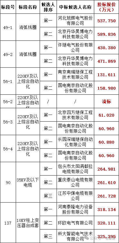 内蒙古电力(集团)有限责任公司2025年固定资产投资项目生产工程第三批设备材料招标采购(项目编号:D1500002025042003D01)评标工作已结束,依据《中华人民共和国招标投标法实施条例》、《招标公告和公示信息发布管理办法》对中标候选人公示的规定,现将评标委员会推荐的中标候选人及否决投标原因(如有)予以公示,公示期3日(2025年05月19日-2025年05月22日)。