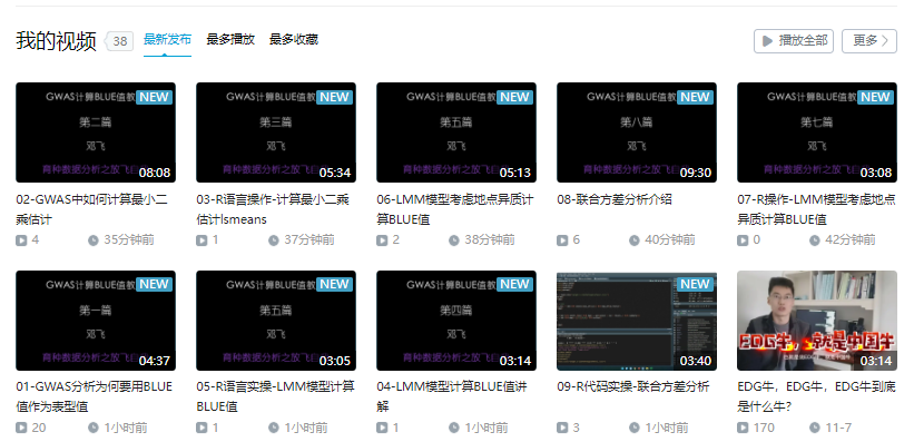 之前,写了几篇GWAS分析中,常见的一年多点数据如何计算BLUE值的公众号,如下所示: