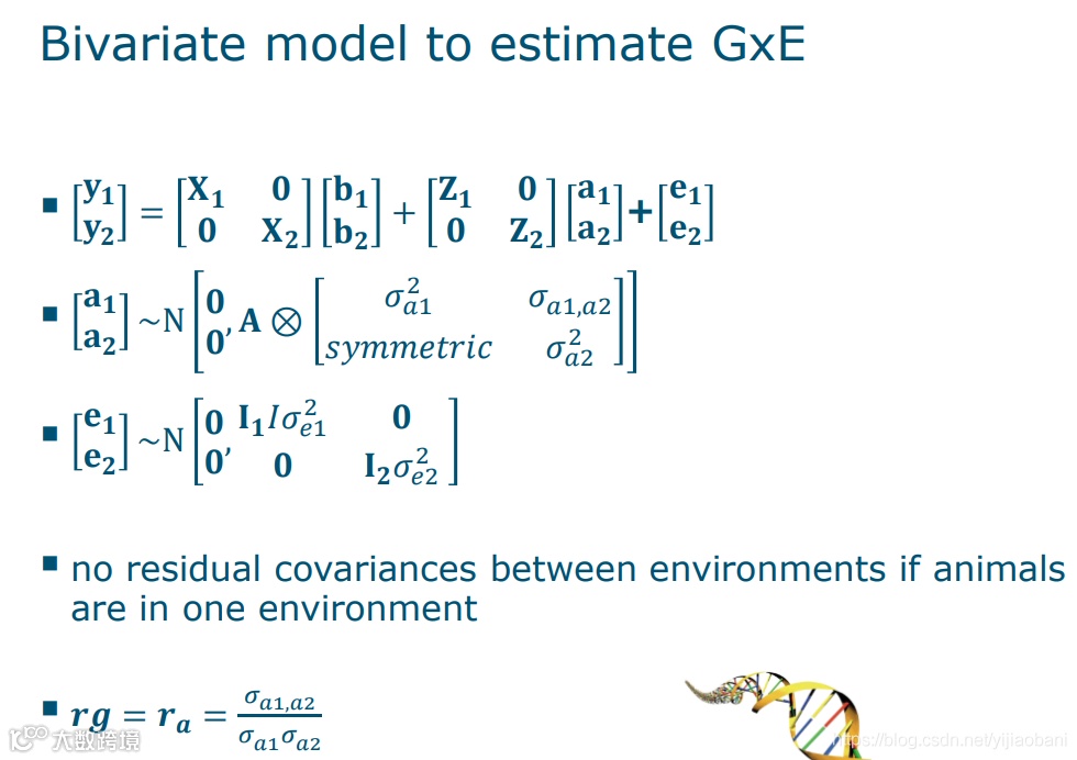 动物同一基因型(不考虑双胞胎或者克隆体)只能在一个环境中,要想计算基因与环境互作,需要利用半同胞、全同胞或者系谱的关系,放到动物模型的框架下进行分析。