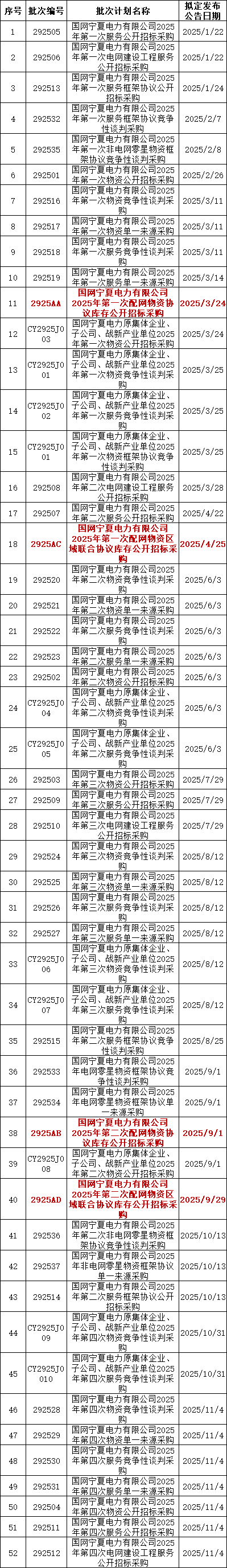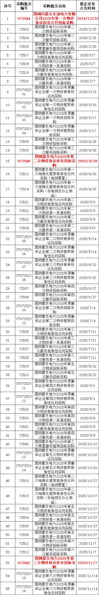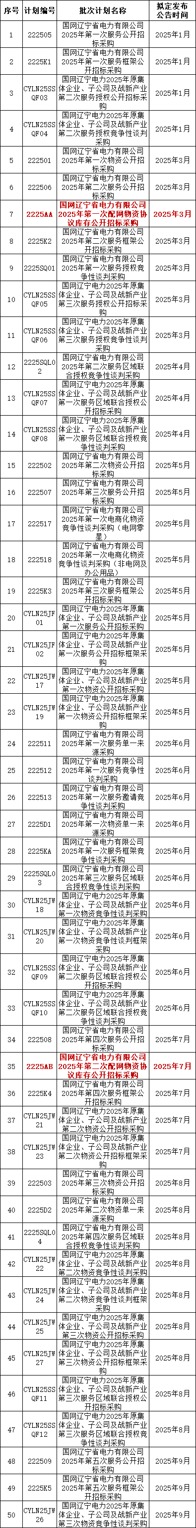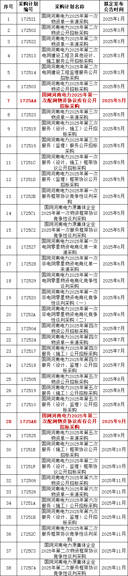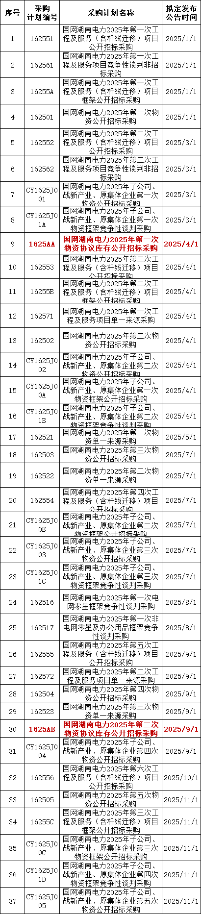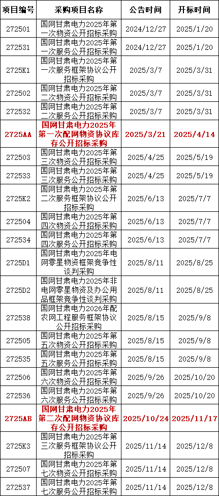 截止日前国家电网共27个省市电力公司已全部发布完2025年集中采购批次安排;