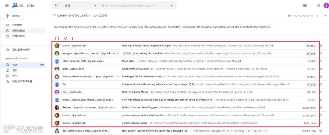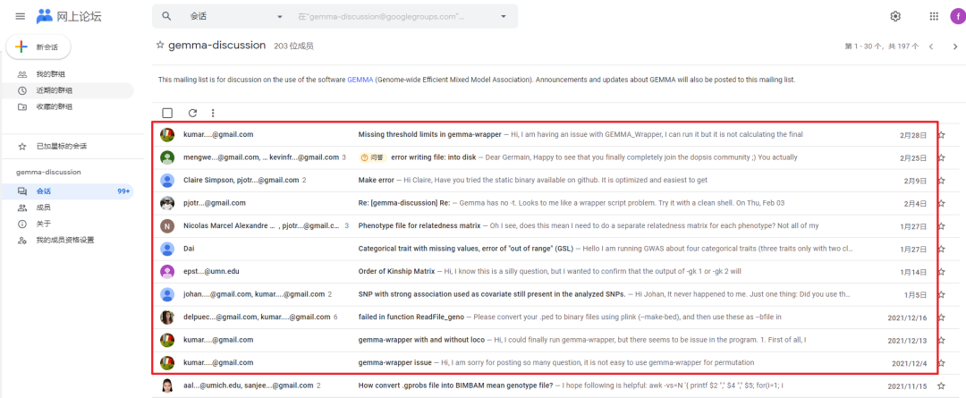 所以,搜索R语言的资料,还是去必应上面搜索吧,有条件的话,去谷歌更赞。因为很多软件,都有谷歌group,比如GEMMA: