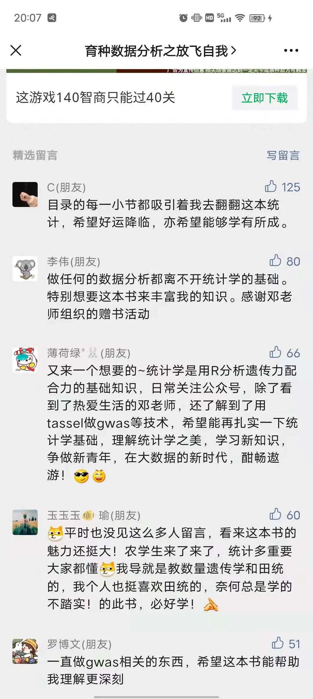 前天的送书活动(留言送书 | 《统计之美》--体会统计的魅力)结果出来了,5位中奖人员,快来联系我吧: