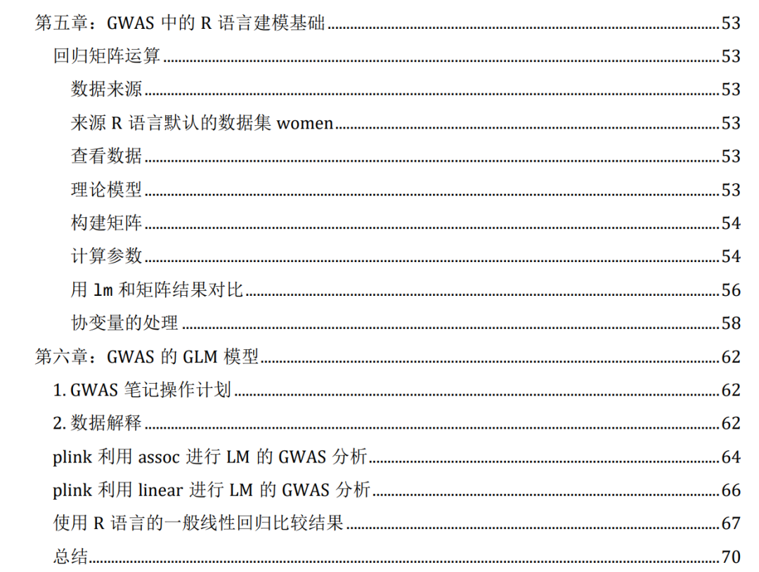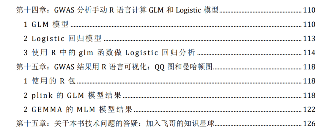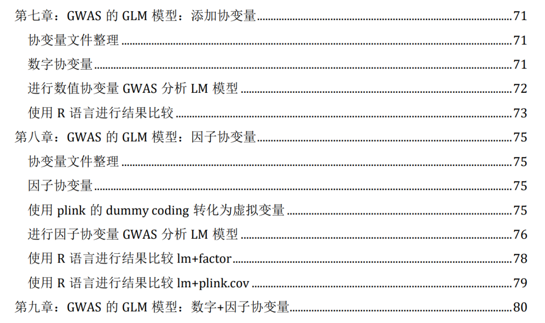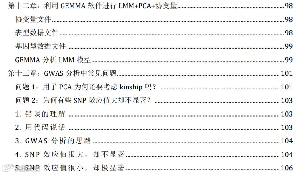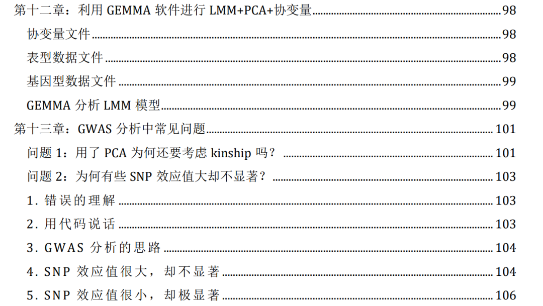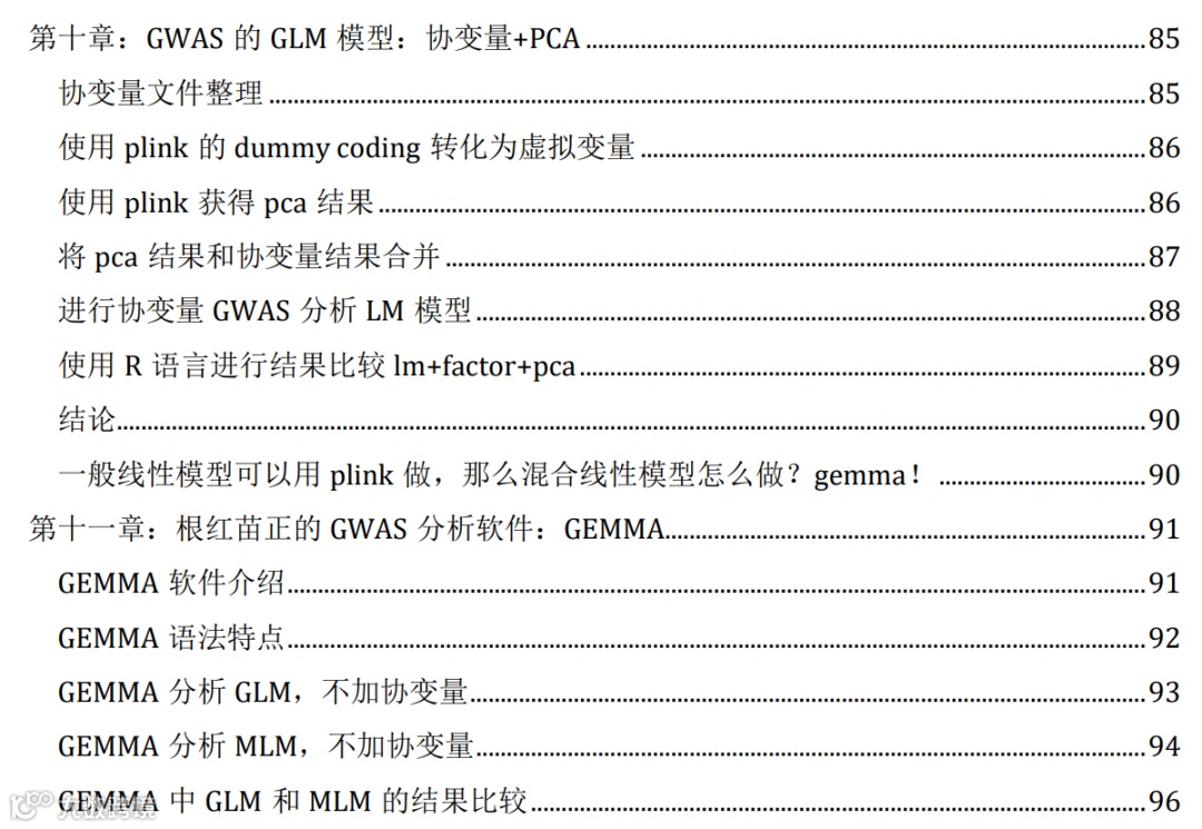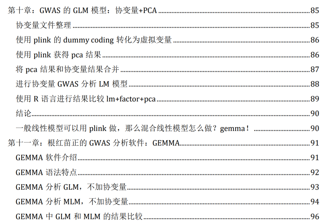 一共129页,本次更新主要是增加了GEMMA做GWAS分析,GWAS常见问题答疑,手动计算GLM和Logistic的GWAS分析,GLM和LMM模型的GWAS可视化,同时修订了第一版的一些错误。