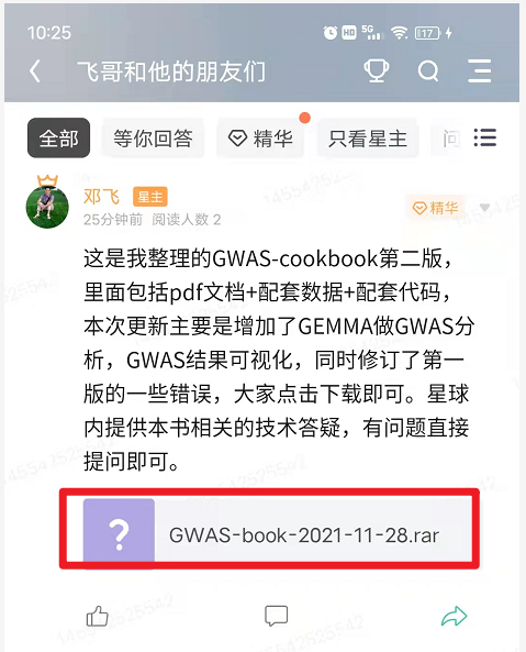 第一种免费领取:将本篇发个朋友圈(文案:飞哥的第二版GWAS教程发布了,我要领取!另外他还开通了知识星球,负责答疑,真贴心),然后加我微信(备注:姓名+单位+GWAS领取)(已经是好友的直接私信我就行),最后把朋友圈截图发给我,我这边手动发送资料。