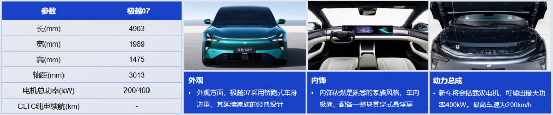 全新车型极越07定位为中大型纯电轿车,将会在成都车展迎来预售,正式上市预计在第三季度内;