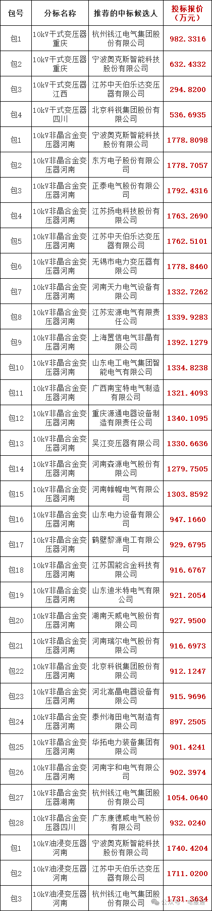 国家电网有限公司2025年华中、川渝区域联合采购示范项目10kV变压器协议库存招标采购(招标编号:GWLHCG-HZCY10kVBYQ-2501)评标工作已经结束。依据《中华人民共和国招标投标法实施条例》、《招标公告和公示信息发布管理办法》对中标候选人公示的规定,现将评标委员会推荐的中标候选人予以公示,公示期3日。投标人或者其他利害关系人若对评标结果有异议的,请在中标候选人公示期间以书面形式(邮件)提出。