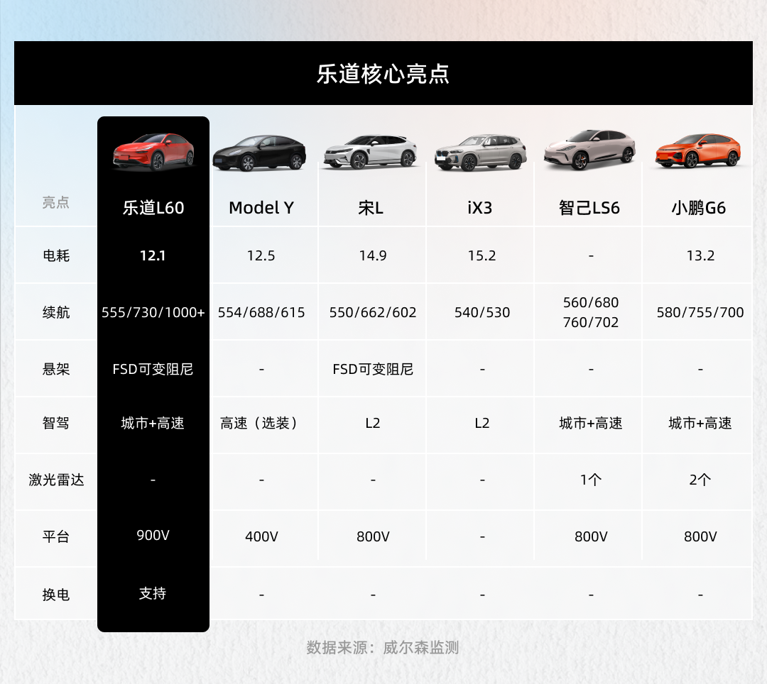毕竟电耗低≠续航长,假如搭配较小的电池,续航未必有优势。乐道L60入门款便只有555公里的续航,属于行业常规水平。