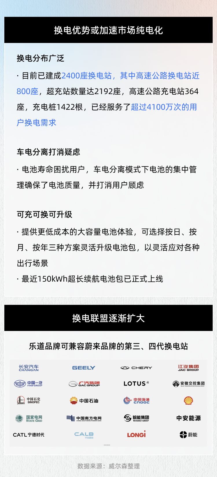 品牌是一个原因,另外一个至关重要原因则是换电,最大化地减少了纯电潜在需求者对续航的焦虑。如果乐道能够在这么一个竞争剧烈,用户十分挑剔的市场突围而出,或许意味着换电,可以成功说服消费者,纯电也可以不焦虑。