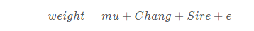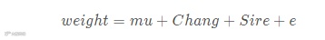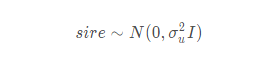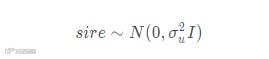 比如这里不同场的一些个公牛(Sire)的体重(y),如果要分析这个数据,公牛作为随机因子,模型为: