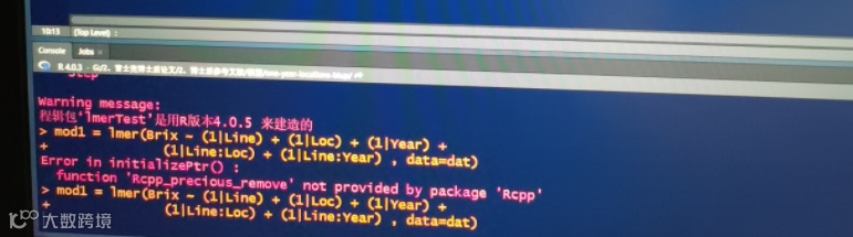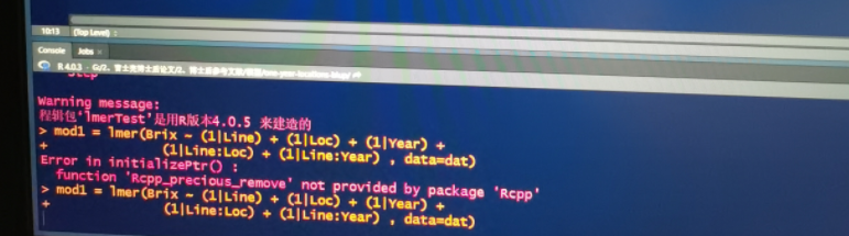 昨天群里面有老师问了一个问题,lme4包报错了: