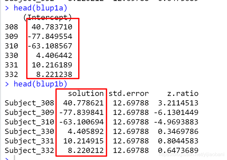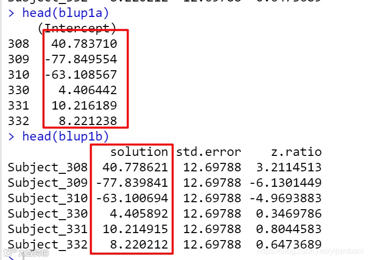 可以看到Subject的方差组分为1378.4,残差的方差组分为960.6, -