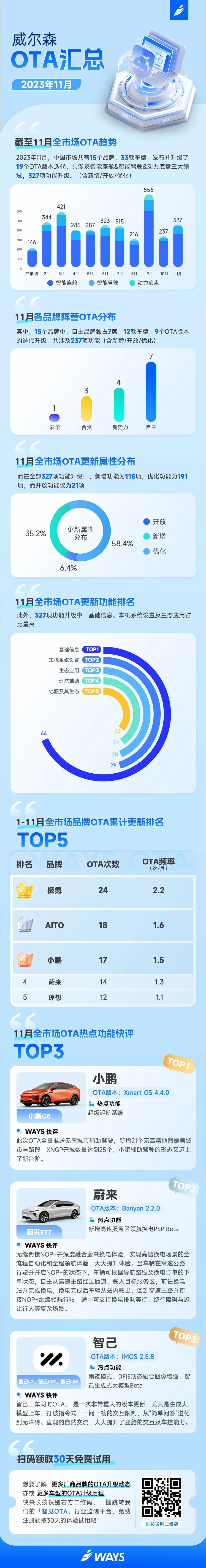 11月OTA总览 | 15个品牌,327项功能升级,小鹏开放无图XNGP