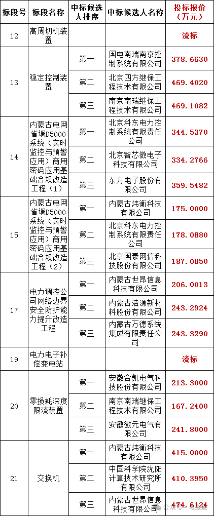内蒙古电力(集团)有限责任公司2025年第二批生产技改预计划项目设备材料招标采购(后审)(第二部分)(项目编号:D1500002025030602D01)评标工作已结束,依据《中华人民共和国招标投标法实施条例》、《招标公告和公示信息发布管理办法》对中标候选人公示的规定,现将评标委员会推荐的中标候选人及否决投标原因(如有)予以公示,公示期3日(2025年04月17日-2025年04月21日)。