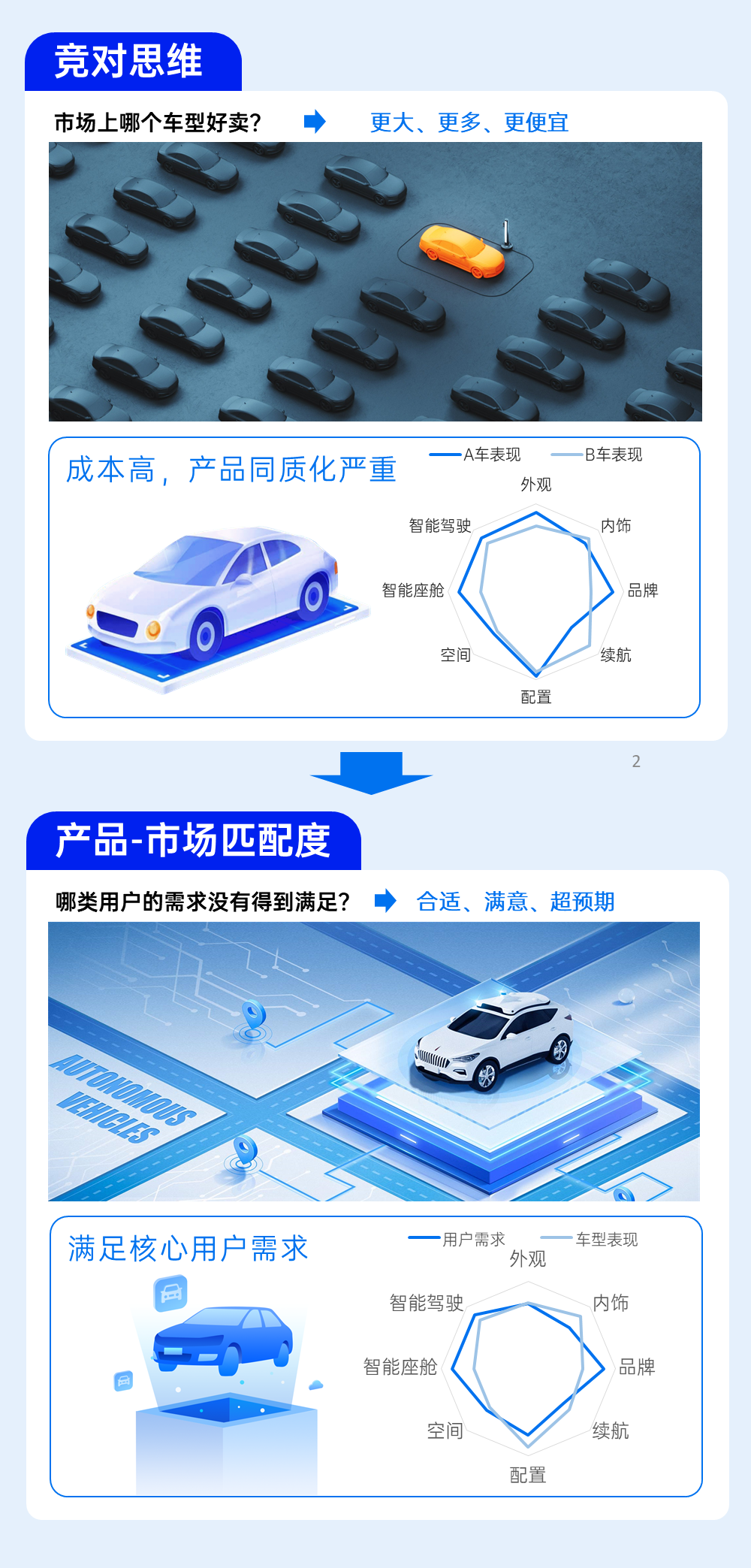 在智能电动车产品规划中,必须遵循新逻辑仅仅追随竞争对手的特性可能不再适应市场需求。车企应该将焦点转移到产品与市场的匹配度上,聚焦满足消费者实际需求和期望,需要深入了解消费者特点以及符合市场趋势的智能化解决方案。这将帮助智电车企业更准确地定位产品的特点和定位,提供符合消费者期待的高品质智能化产品。