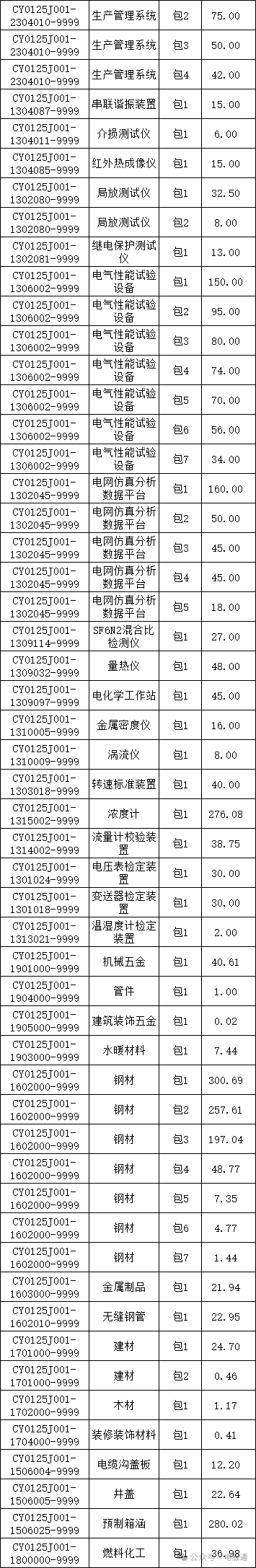 2025年原集体企业及子公司第一次物资批次公开招标采购