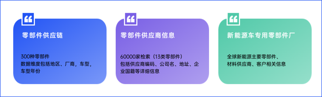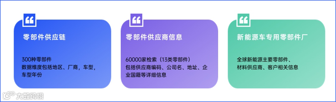 包含新型市场在内,覆盖全球70+国家,五大地区生产主流车型零部件的所有供应商及市场占有情况。