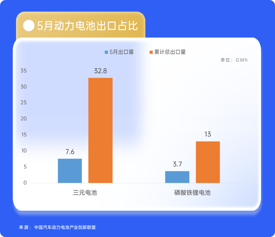 在新能源汽车加速出海的过程中,整个产业链也在加速向外延伸。这当中,新能源汽车的核心部件动力电池的出口增势最为显著。中国汽车动力电池产业创新联盟数据显示,今年5月,我国动力电池企业电池出口共计11.3GWh。