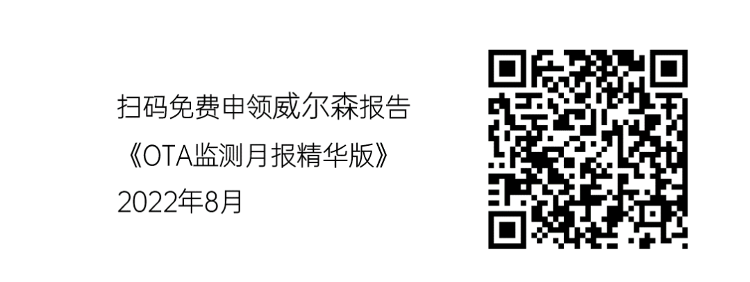 以上内容节选自威尔森付费报告《OTA监测月报》,更多内容请查阅相关报告,现在扫描上面二维码可以免费申领精华版报告。