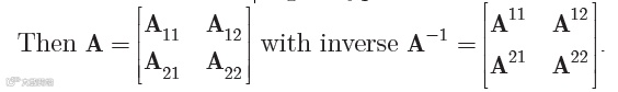 那么A矩阵和A逆矩阵可以剖分为: