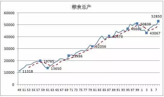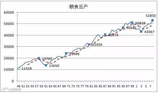 新中国成立的40年内,中国的人口由4亿上升到10亿,而中国之前的人口总额一直维持在4亿以内,进入了马尔萨斯的人口陷阱,在粮食没有显著提高时,人口进入了土地所能承载的上限。但新中国成立之后,中国人口大幅度的增加,有很多原因,比如和平时期,比如鼓励生育,比如医疗卫生条件提升,但归根是粮食的增加。