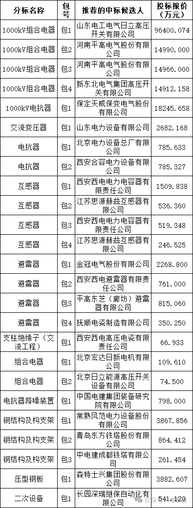 国家电网有限公司2025年第十二批采购(特高压项目第一次设备招标采购)(招标编号:0711-25OTL01712005)评标工作已经结束。依据《中华人民共和国招标投标法实施条例》、《招标公告和公示信息发布管理办法》对中标候选人公示的规定,现将评标委员会推荐的中标候选人予以公示,公示期3日。投标人或者其他利害关系人若对评标结果有异议的,请在中标候选人公示期间以书面形式(邮件)提出。