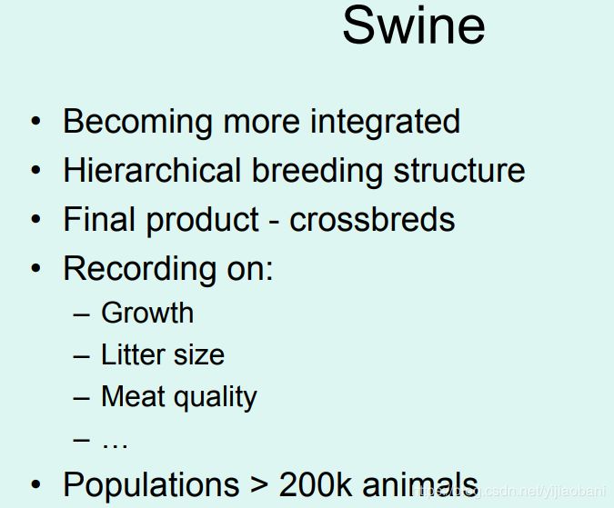 育种数据分析的效益很高,也存在一些难点。这个PPT讲了育种数据计算中现状以及挑战,讲了动物育种中效率的提升依赖于工具的进步,这些工具目前的进一步发展也存在一些挑战. 很全面的讲述。文字中,我加上了自己的理解和翻译。