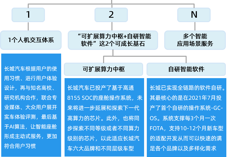 在智能座舱方面,2021年6月29日,咖啡智能2.0提出了“1+2+N”的出行空间设计架构。