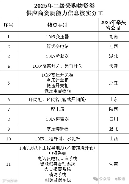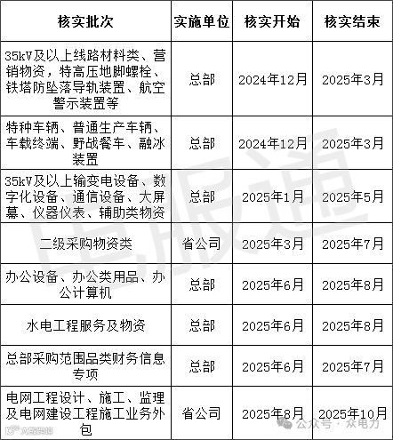 2025年核实工作计划如表1。根据实际情况,核实时间可能有所调整,各批次具体安排将在国家电网有限公司新一代电子商务平台(以下简称“ECP2.0”)提前发布公告,请以相关公告为准。