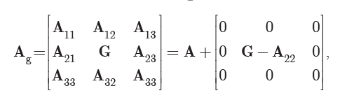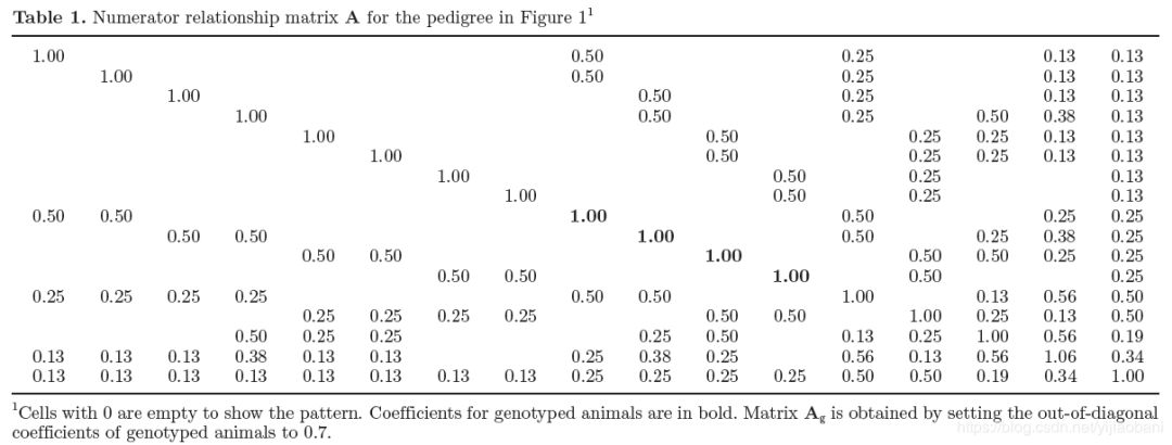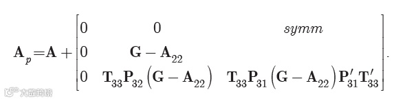 是所有个体的亲缘关系矩阵, 如果在所有个体矩阵中剖分出A矩阵, 那么: