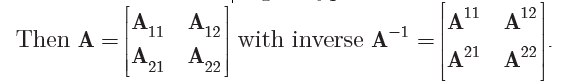 那么A矩阵和A逆矩阵可以剖分为:
