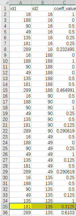 135和181的亲缘关系系数为:0.3125, 和书中结果一致.