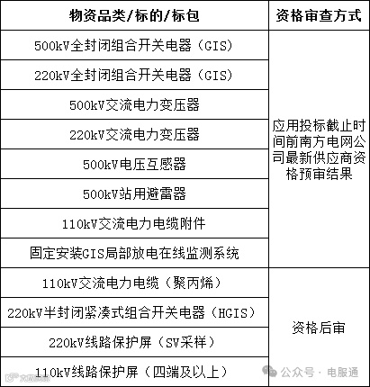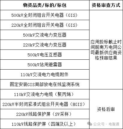 2.3资格审查方式:应用投标截止时间前南方电网公司最新供应商资格预审结果/资格后审,具体见下表: