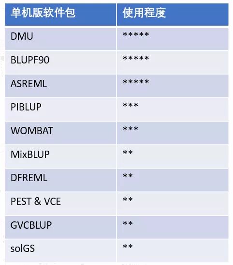 考虑到基于BLUP的分析软件,在速度、准确性和无偏性测试中比较稳健,且贝叶斯方法存在速度限制的问题,所以本次软件调研主要偏向于基于BLUP的软件。