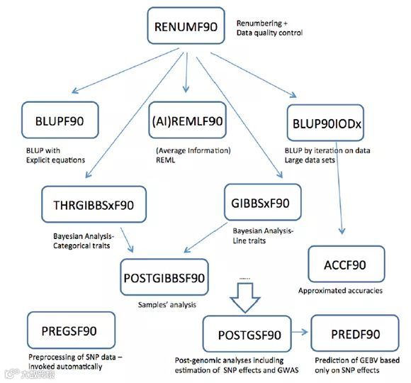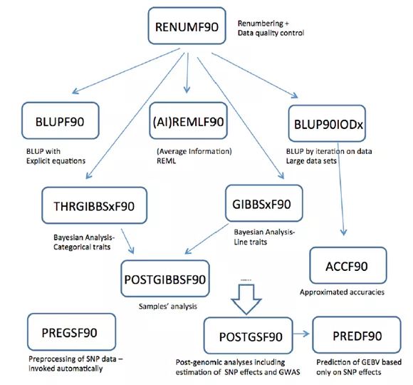 BLUPF90命名:BLUP:最佳线性无偏预测;F90:Fortran 90/95