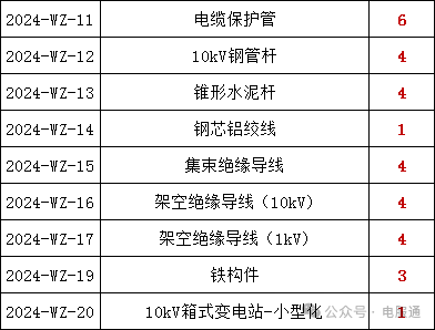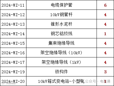 2、装置性材料:电缆、金具、铁附件、保护管、绝缘子等