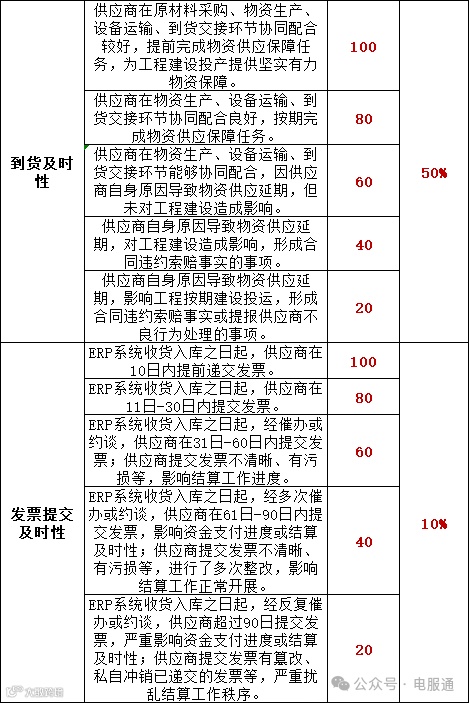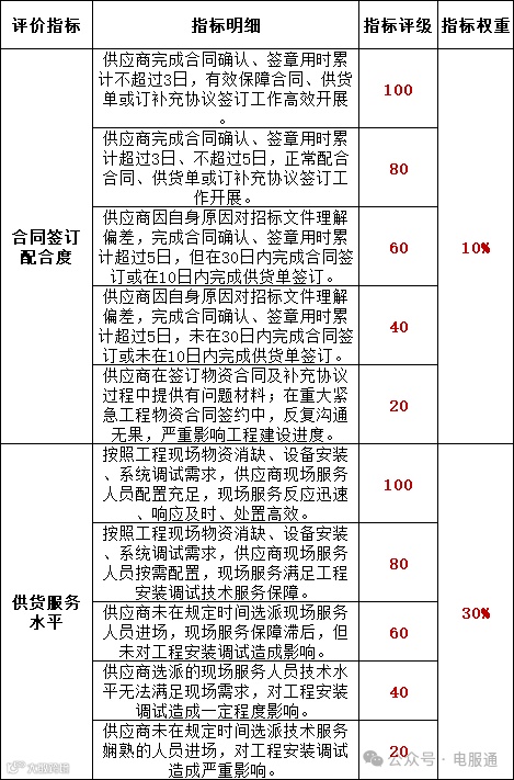 近期,河北公司开展了2025年省招物资履约环节供应商评价工作,评价规则(平台各指标明细和分值)。