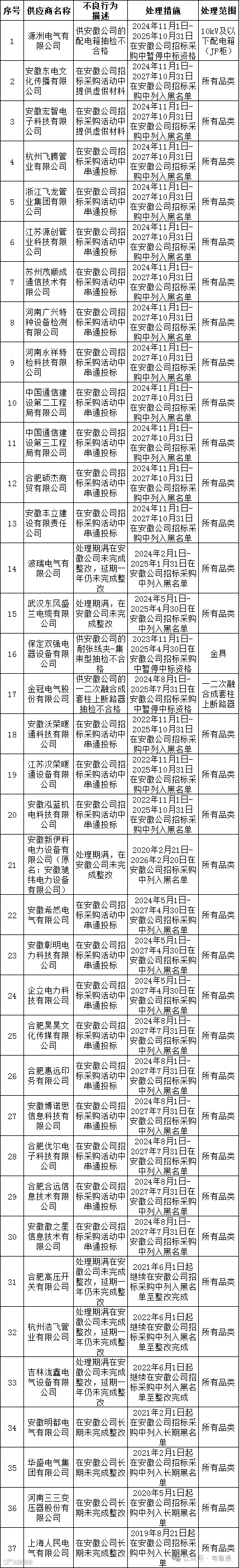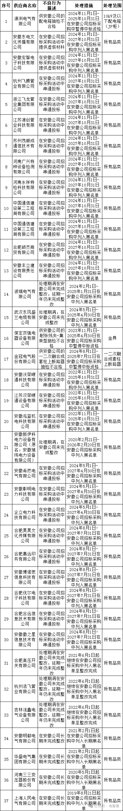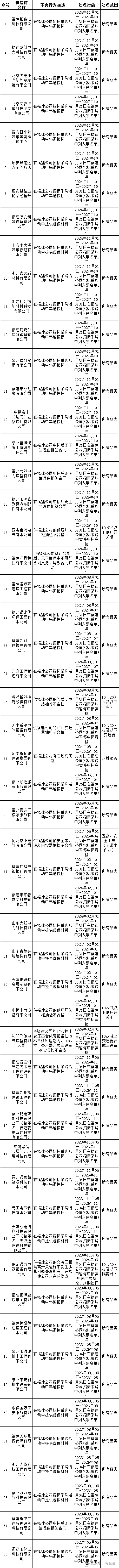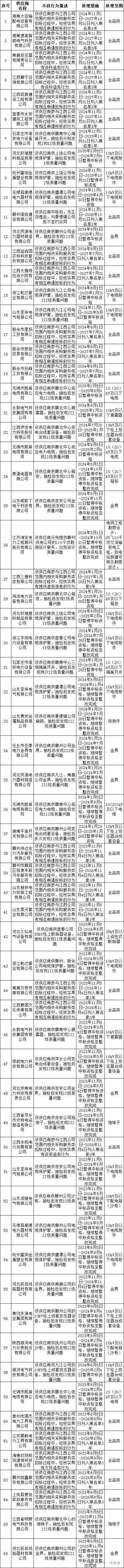 为促进供应商诚信履约,保证产品质量,确保电网建设顺利进行及安全可靠供电,依据《国家电网公司供应商关系管理办法》(以下简称《办法》)的有关规定,对出现重大产品质量问题、履约不诚信等问题的供应商进行了处理,具体处理情况如下图所示。