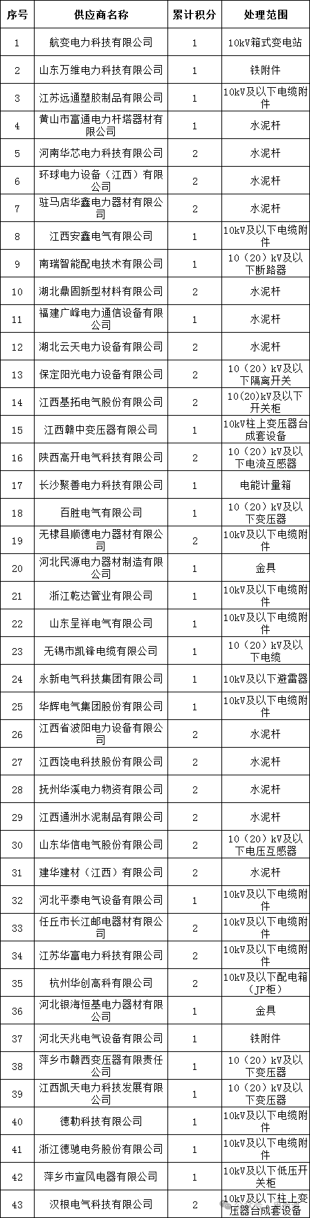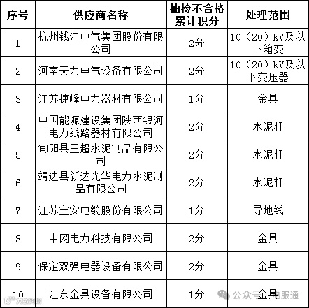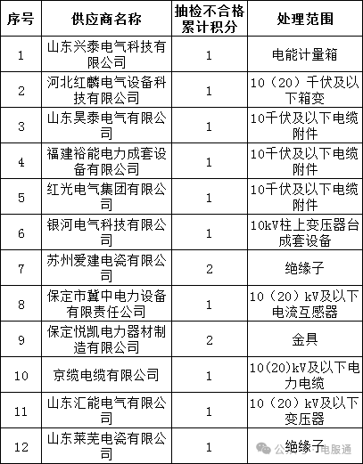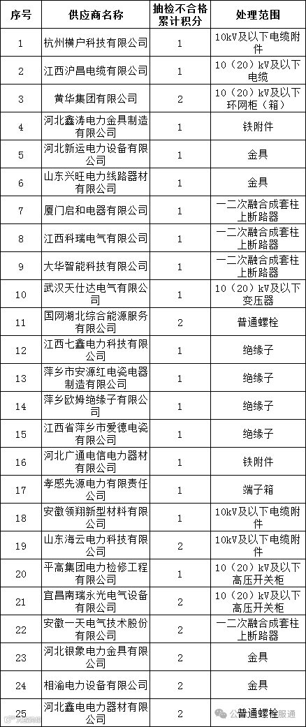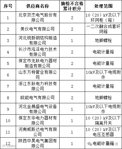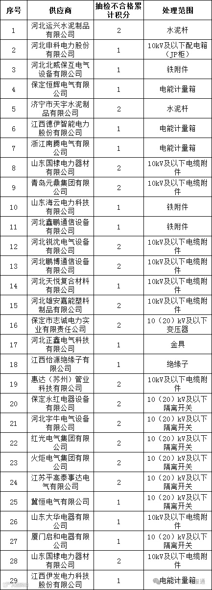 本次小编汇总:国网26省市公司关于供应商产品抽检质量问题累计积分的公告,详情如下:
