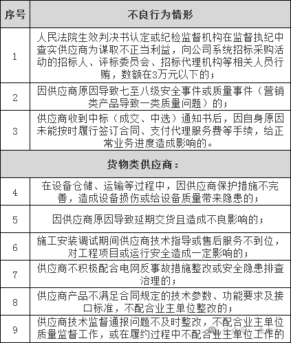 为进一步促进供应商诚实守信、保证质量,国家电网有限公司对《国家电网有限公司供应商不良行为处理管理细则》进行了修订,统一合并入《国家电网有限公司供应商关系管理办法》。新版办法对部分不良行为情形进行了修订,增加了结果应用时间节点等内容。新修订的《办法》自2023年11月10日起施行。