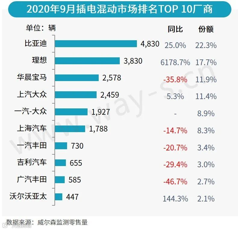 9月,插混市场销量前10厂商市场份额约91.7%。比亚迪超越理想和华晨宝马,夺得榜首;理想稳居第二,华晨宝马位居第三。