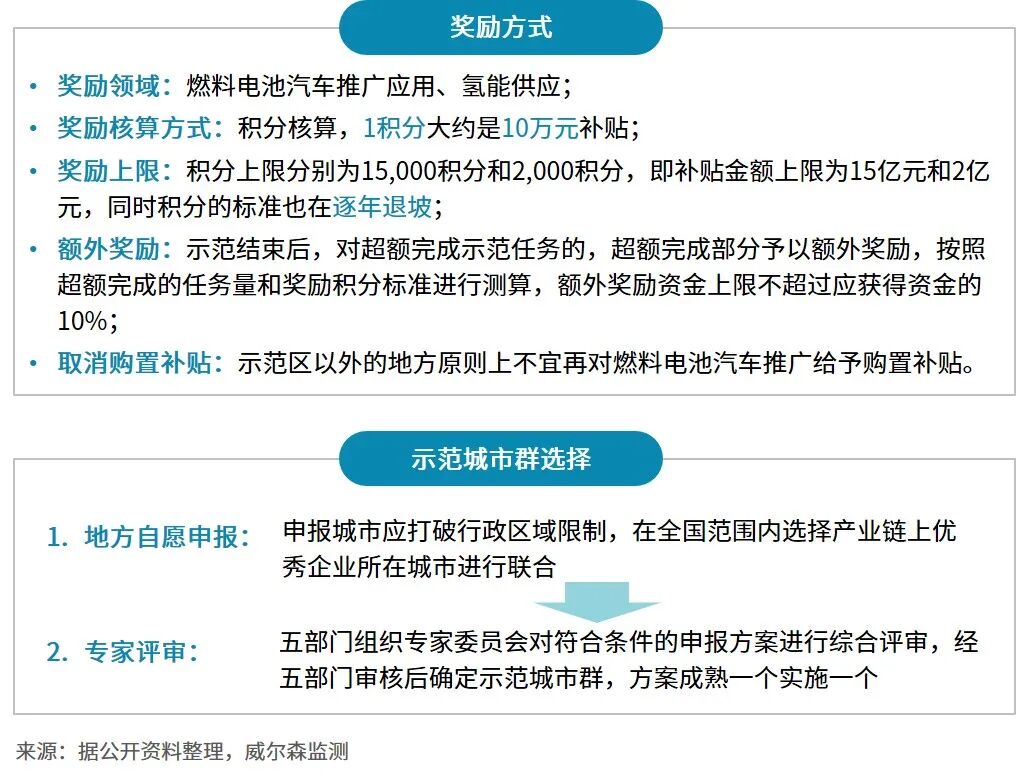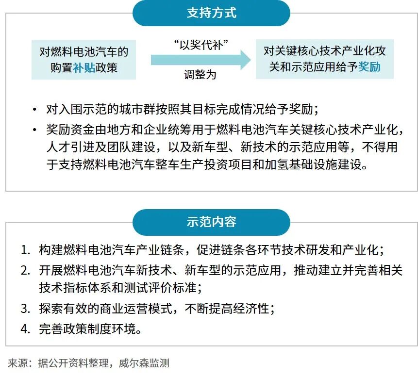 9月21日,财政部、工信部等五部门发布的《关于开展燃料电池汽车示范应用的通知》明确,五部门将对燃料电池汽车的购置补贴政策,调整为燃料电池汽车示范应用支持政策,对符合条件的城市群开展燃料电池汽车关键核心技术产业化攻关和示范应用给予奖励。