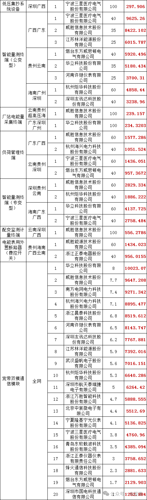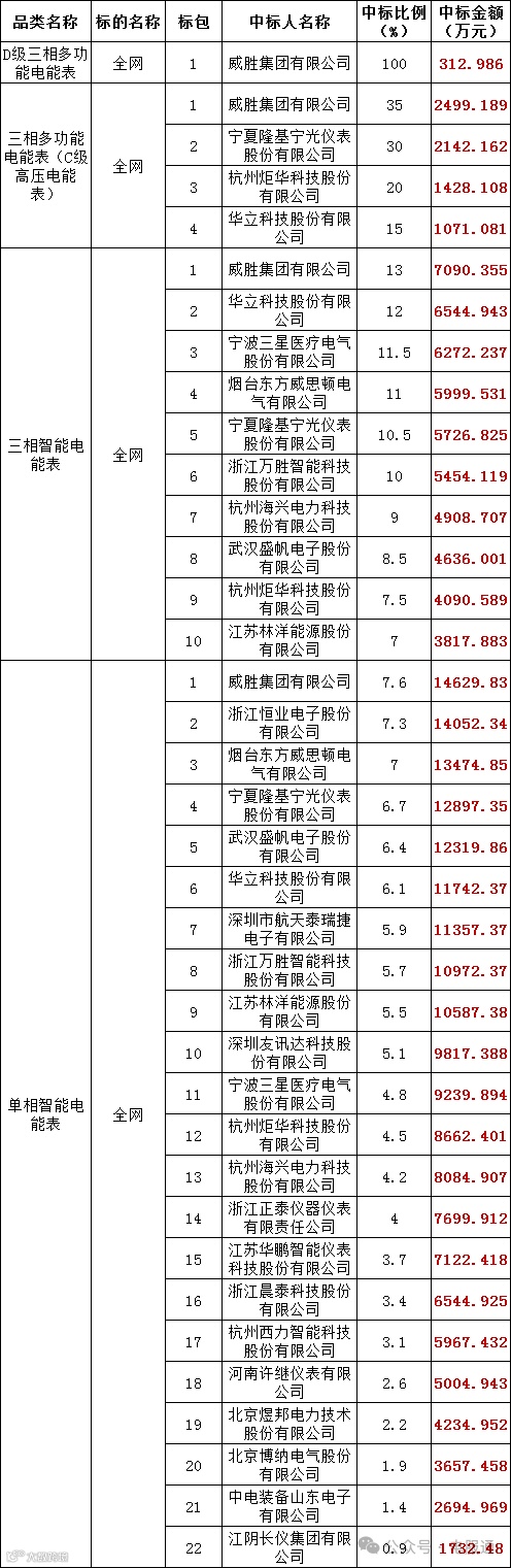 南方电网公司2024年计量产品第二批框架招标项目(招标编号:CG2700022001891634),确定中标人如下: