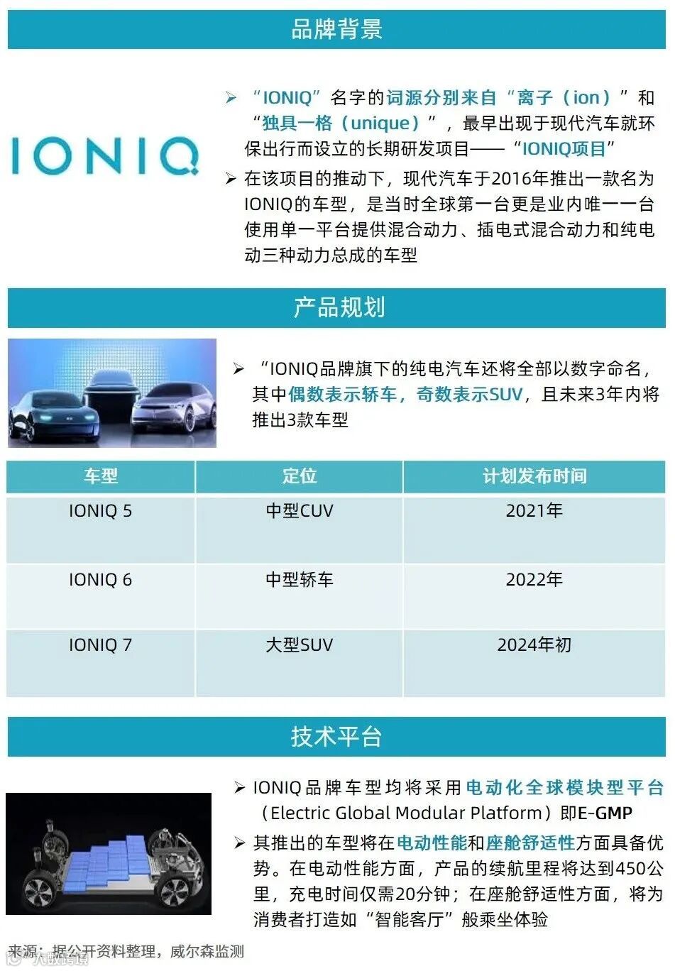 8月10日,现代汽车发布旗下纯电动汽车全新专属品牌IONIQ,计划到2024年将推出 IONIQ5、IONIQ6 和 IONIQ7 三款纯电动车型。